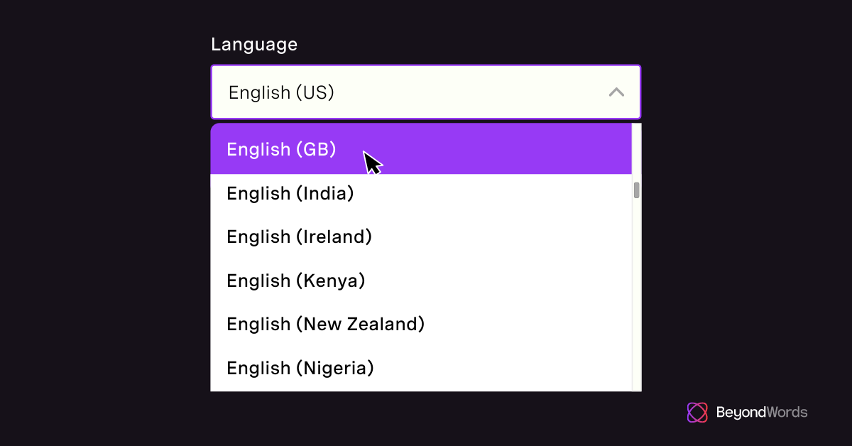 At BeyondWords, every user gets access to an AI voice library featuring 500+ voices from Amazon Polly, Microsoft Azure, and Google Cloud. And, thanks to automatic SSML tagging, these AI voices sound better when they're used through BeyondWords.