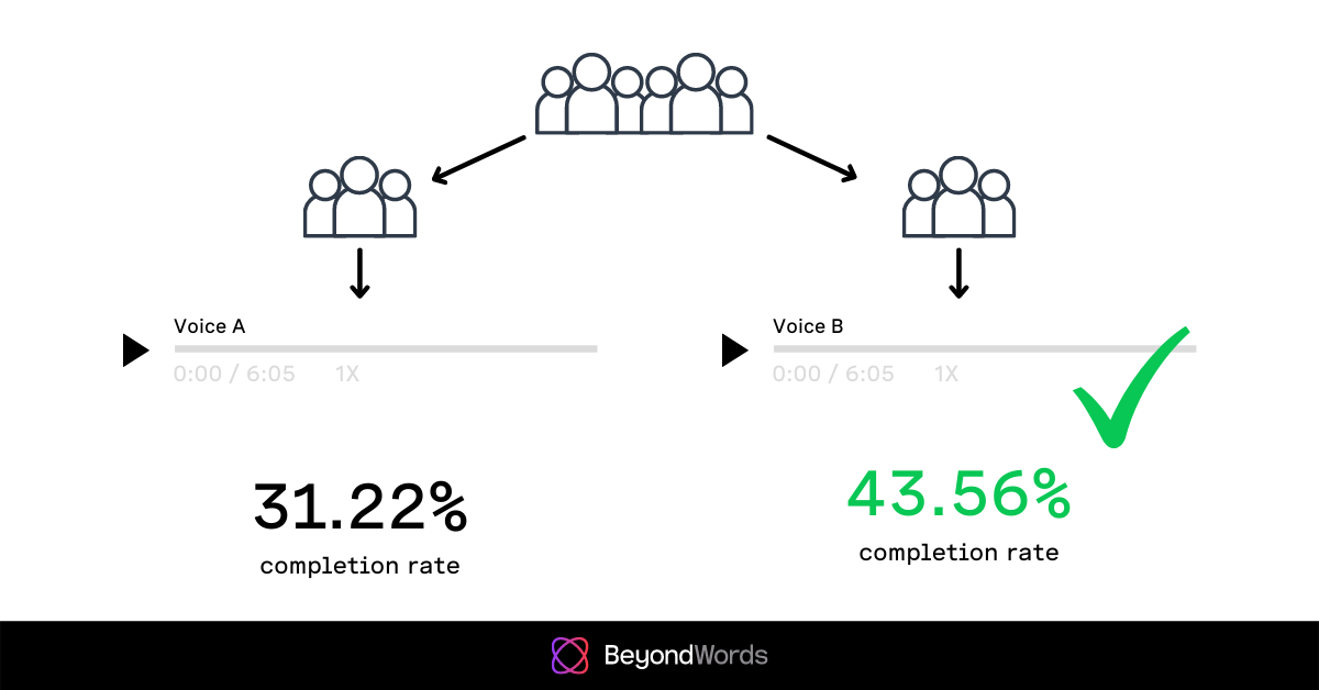 Through testing and analytics, you can empirically measure which voices are best at keeping listeners engaged. A/B testing, or split testing, gives the most reliable results: