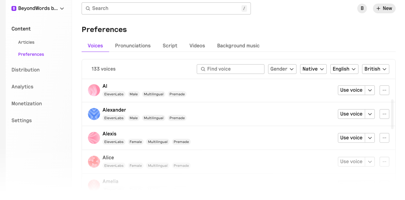 If you’re looking for pre-made voices to narrate your articles, the abundance of choice quickly becomes friction.