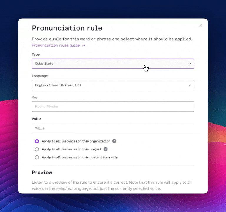 At BeyondWords, we’re obsessed with quality. For us, that means your audience is talking about your content—not distracted by mispronunciations. Since our inception, we’ve allowed customers to adjust pronunciations using the Rules feature in the BeyondWords dashboard. But we knew we could make it even easier.