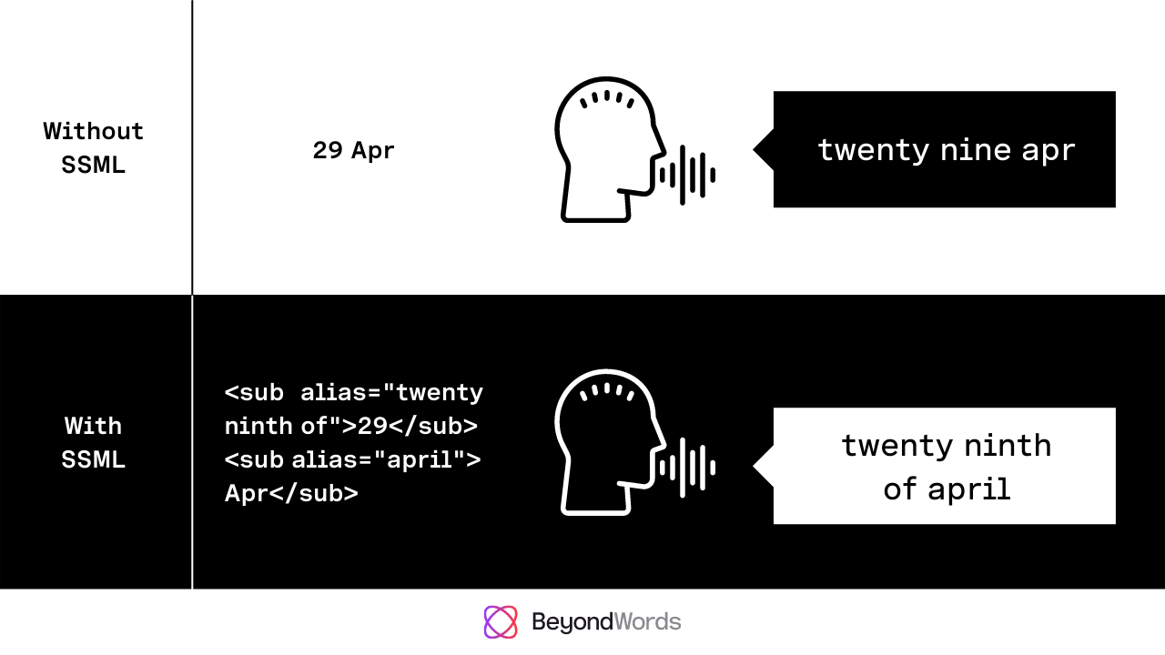 BeyondWords, on the other hand, adds the SSML tags for you.